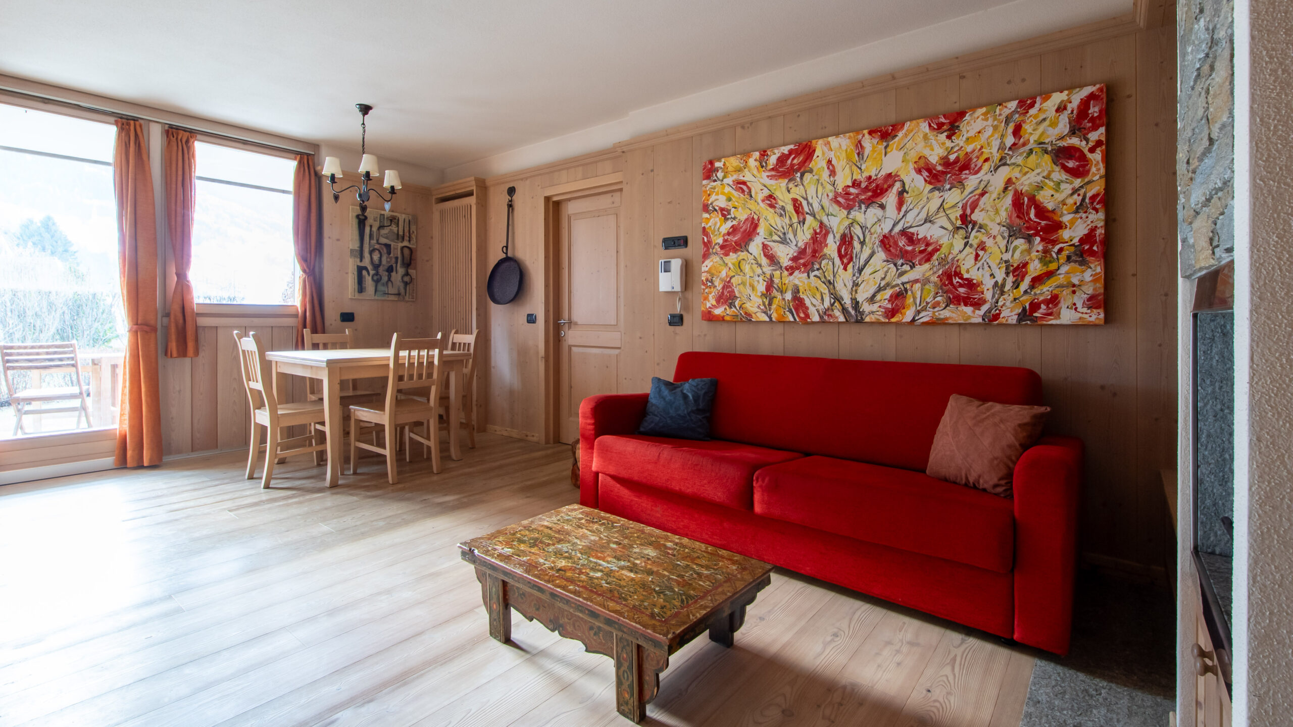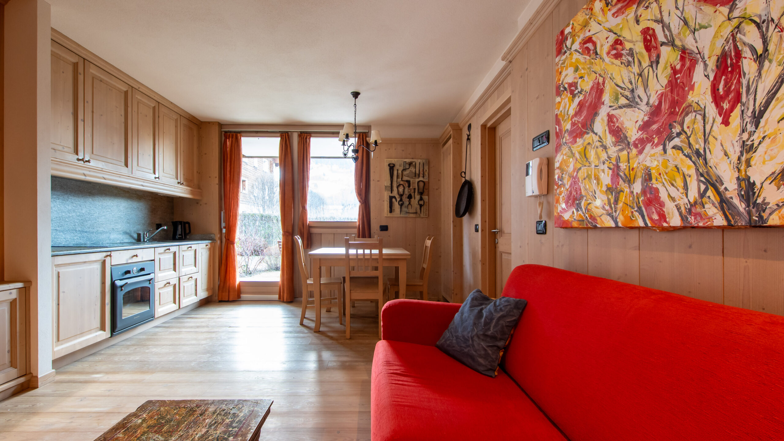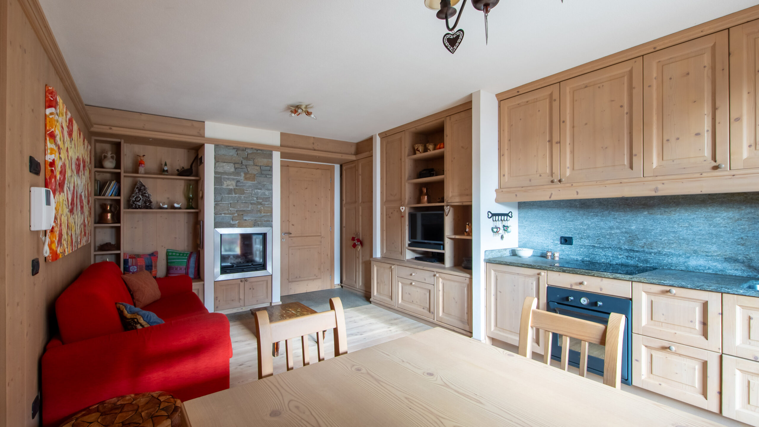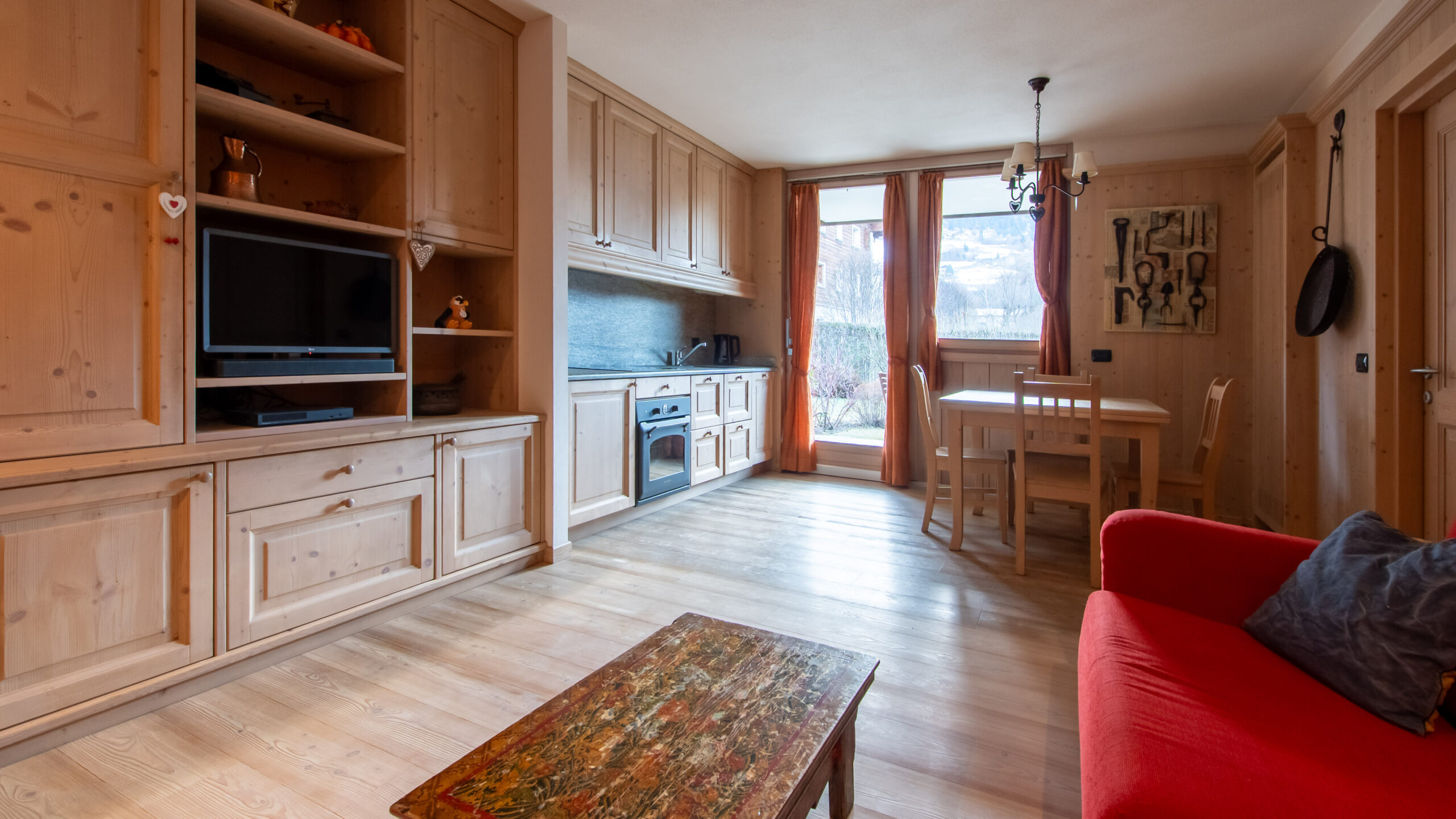 This comfortable two-bedroom apartment combines the warmth of Alpine style with an optimal layout, offering a spacious and bright home base just minutes away from the town center and Bormio’s main attractions.